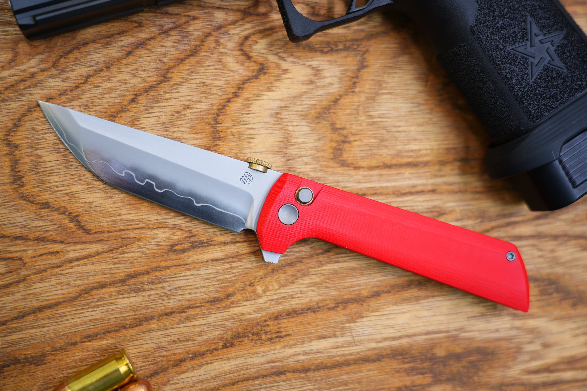 Reinforced Button Lock Frame – Now with a brass inlay around the button, improving wear resistance and durability for both G10 and carbon fiber handle options.