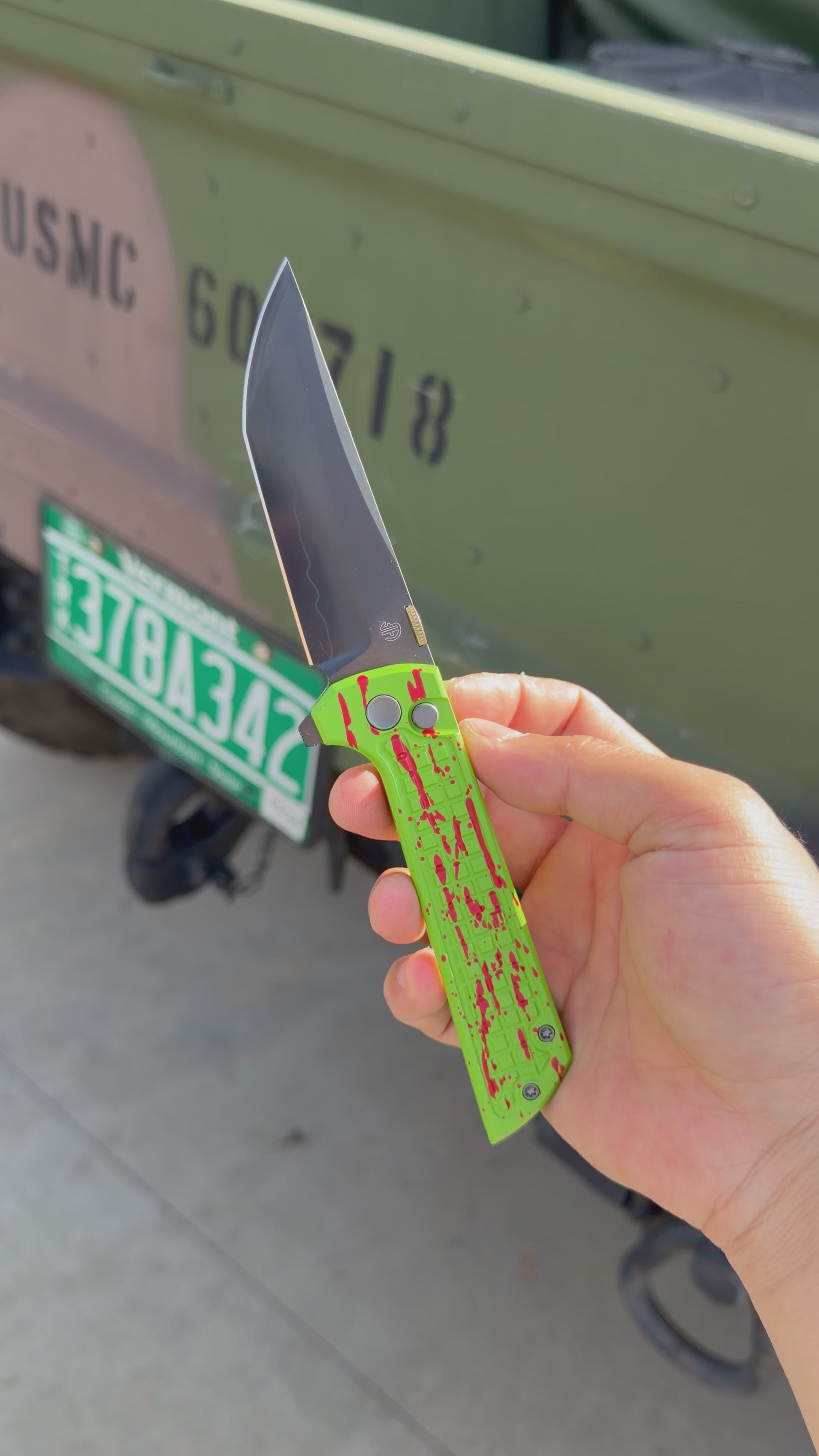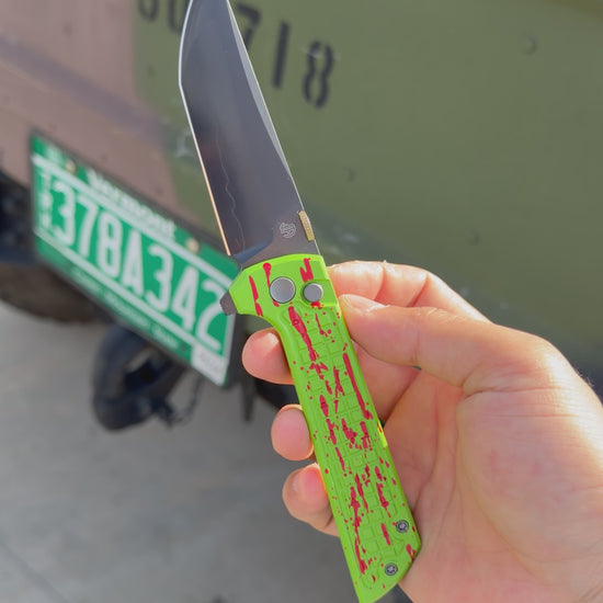 Zombie Blood Theme: The handle features a vibrant "Electric Green" base with a Red Splatter coating, commonly referred to in the EDC community as a "Zombie Blood" or "Biohazard" colorway. It’s a fun, high-visibility look that stands out in any collection.