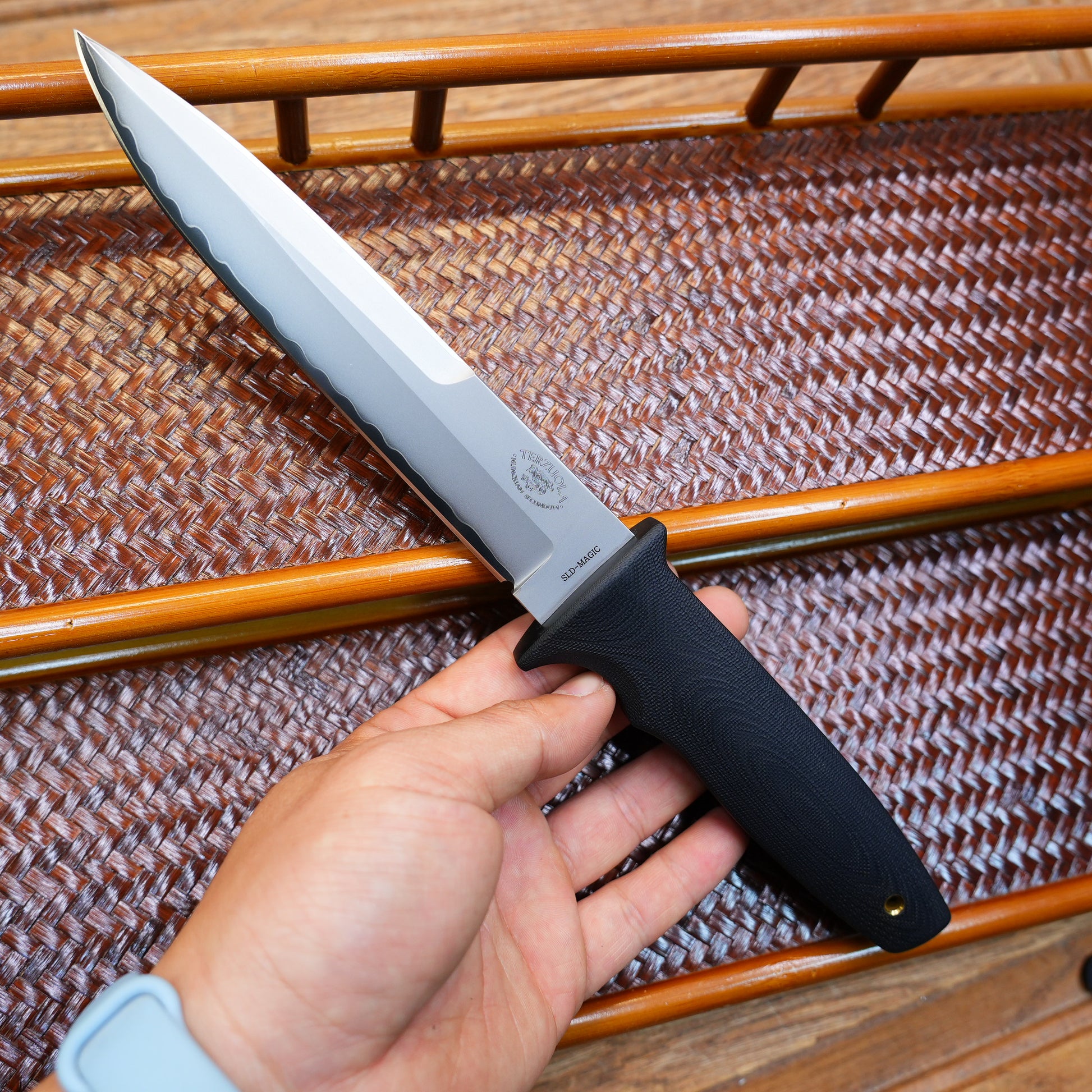Forged SLD-Magic Steel: We chose Japanese SLD-Magic steel for its incredible edge retention and toughness. Each blade is hand-forged and hand-polished, revealing a stunning texture reminiscent of a traditional Japanese Samurai sword (Hamon-like aesthetics).
