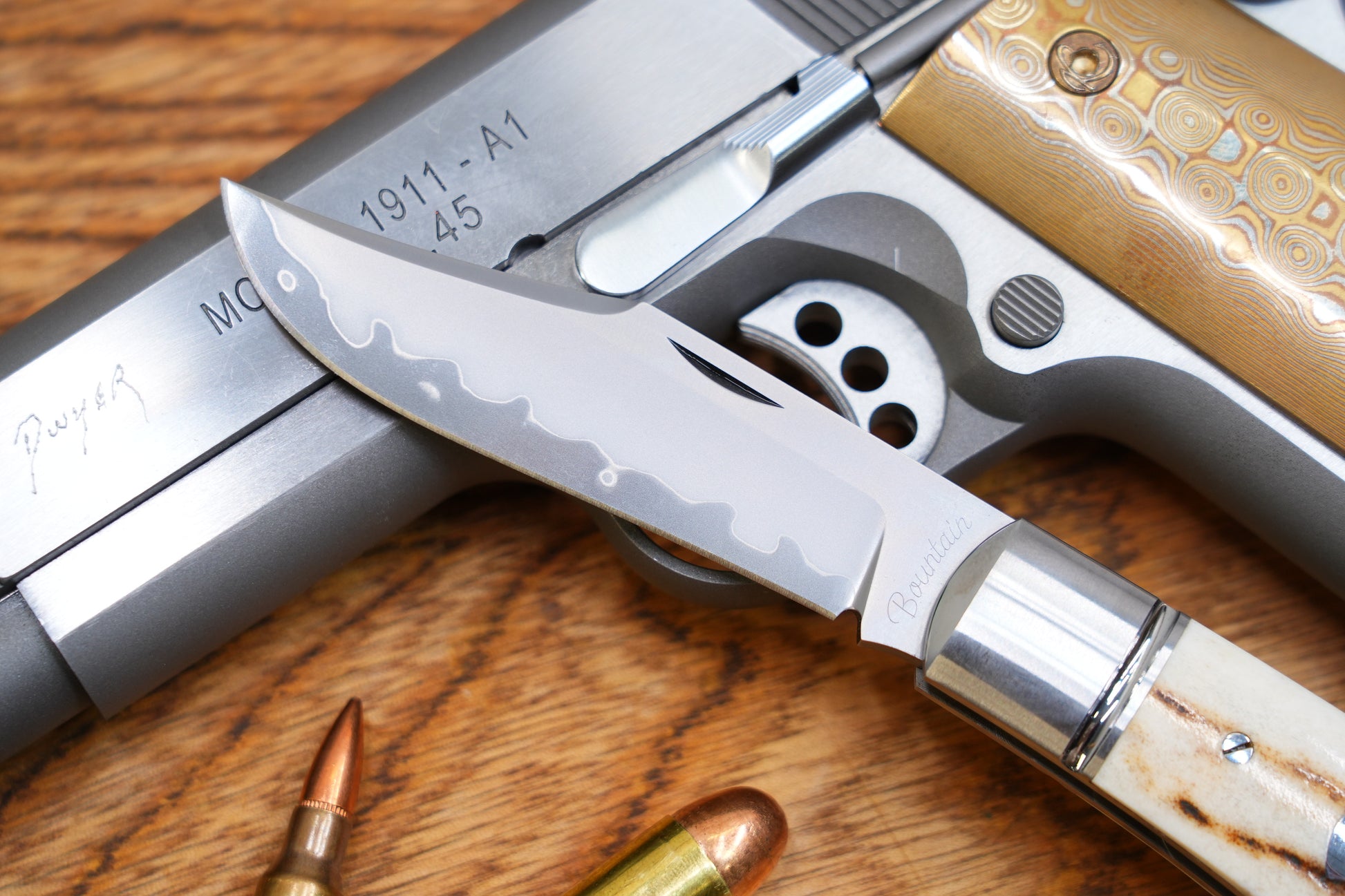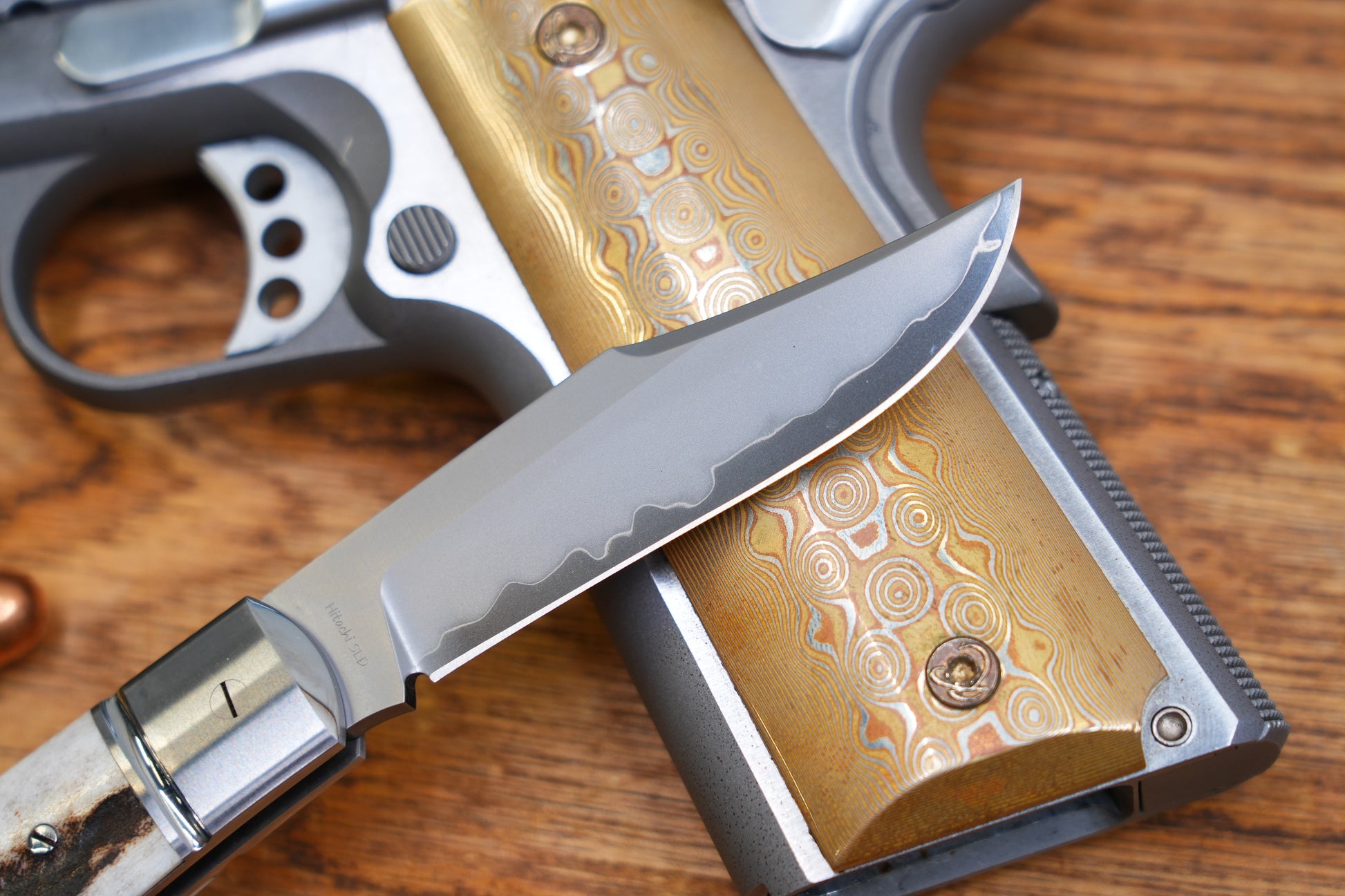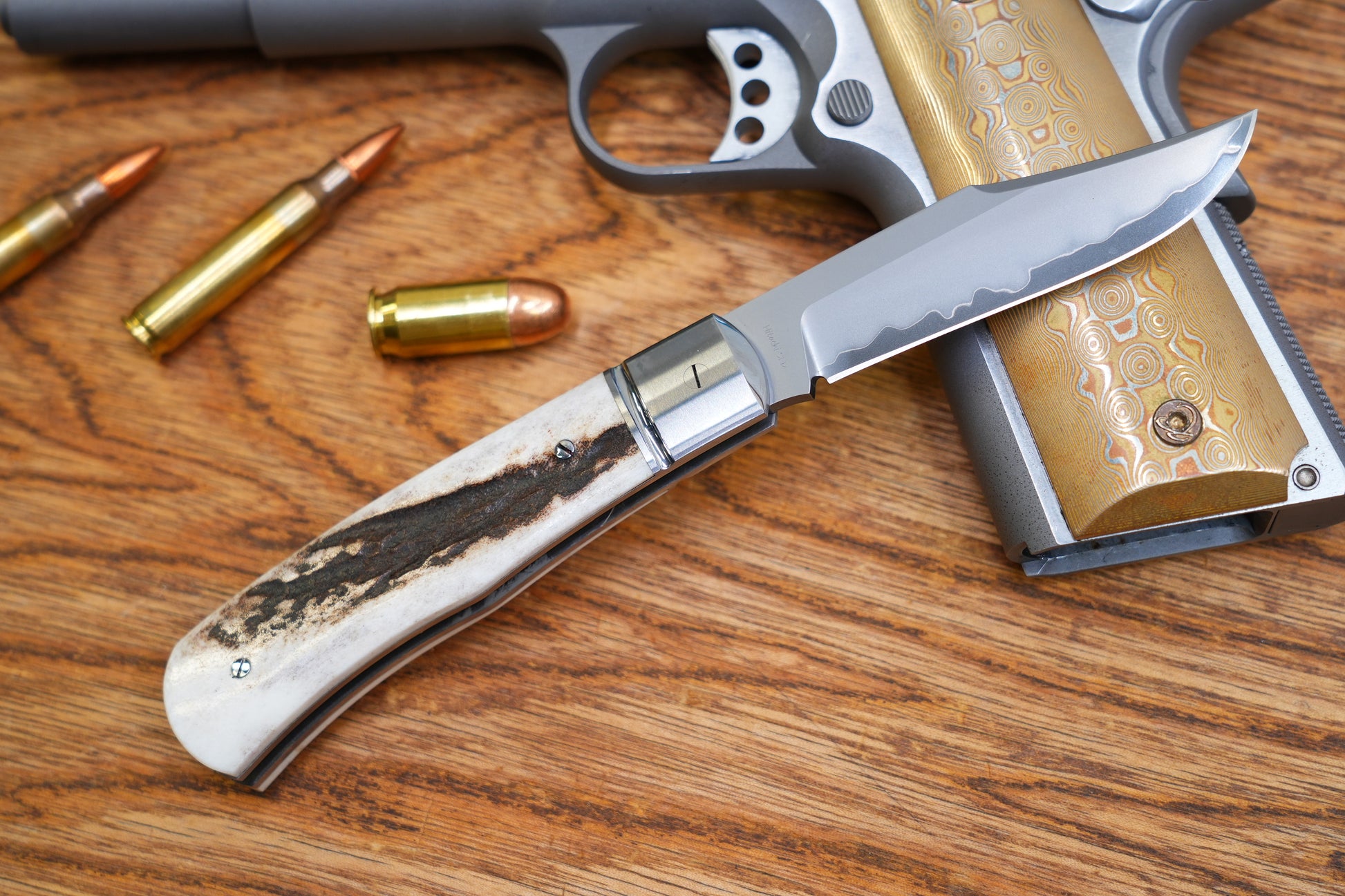 The handle made of antler is exquisite and elegant