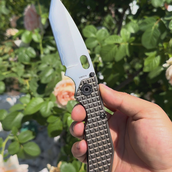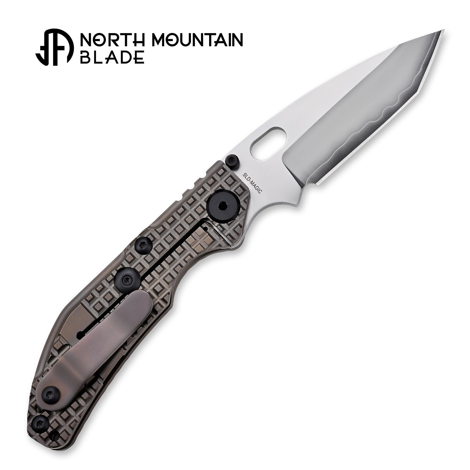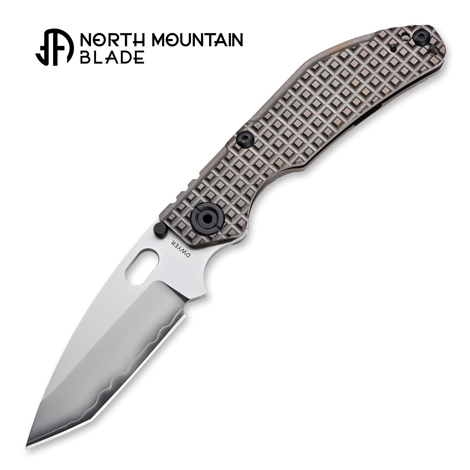 The North Mountain Blade BBNM is a precision-crafted folding knife that blends modern performance with traditional craftsmanship. Designed by Duane Dwyer and made by Japanese-trained artisans, this knife features a striking SLD semi-stainless steel blade with a satin finish and hamon, offering exceptional durability and edge retention. The tanto blade shape and flat grind ensure reliable cutting power for a variety of tasks, while the titanium handle provides a sturdy yet lightweight grip. A robust frame lock secures the blade, and the smooth action makes deployment effortless. Built for those who demand quality and performance, the BBNM is a refined pocket knife with a rugged soul.