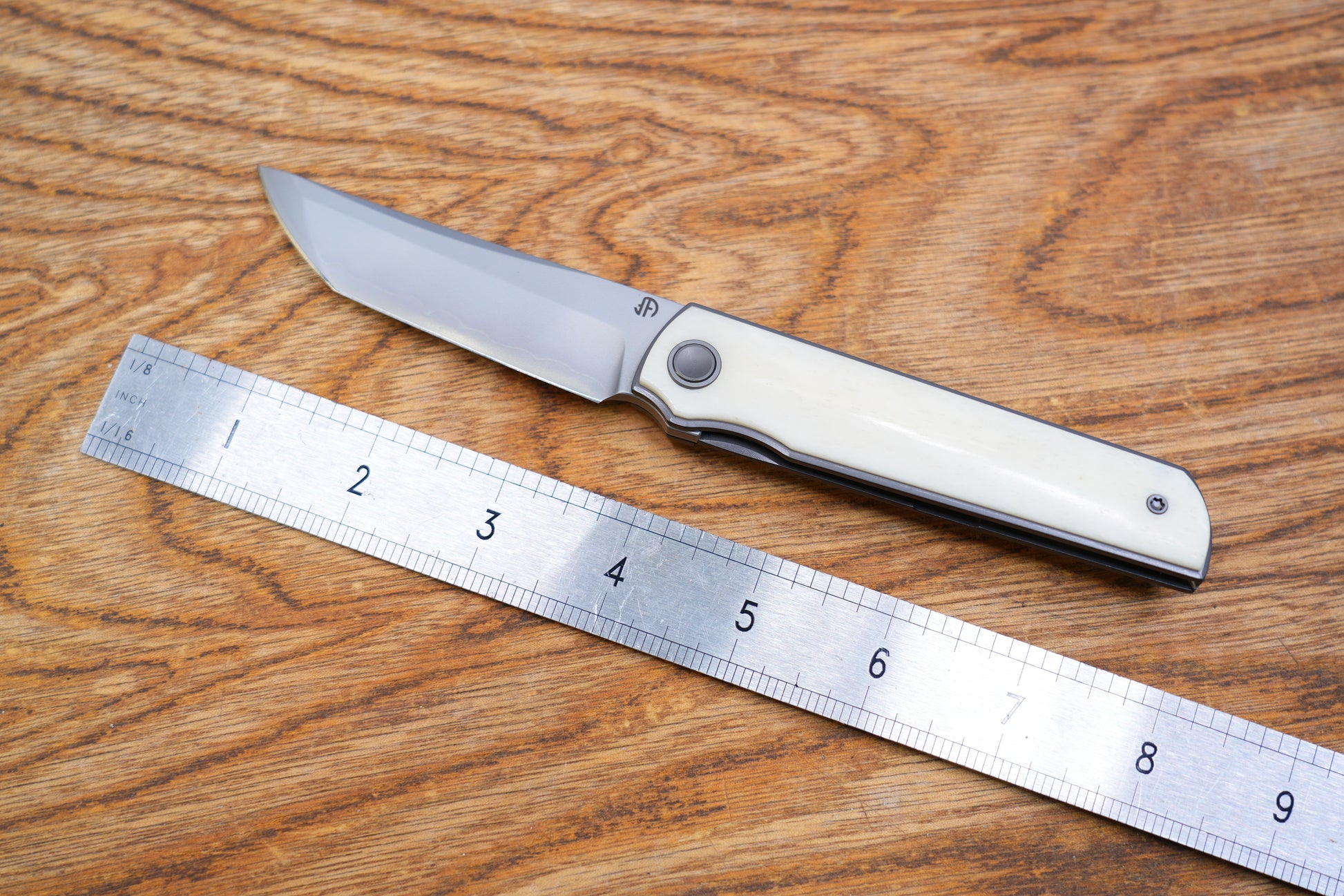 This knife shows signs of use; the layers of the three-ply steel are not clearly visible, but the mechanical structure is normal.