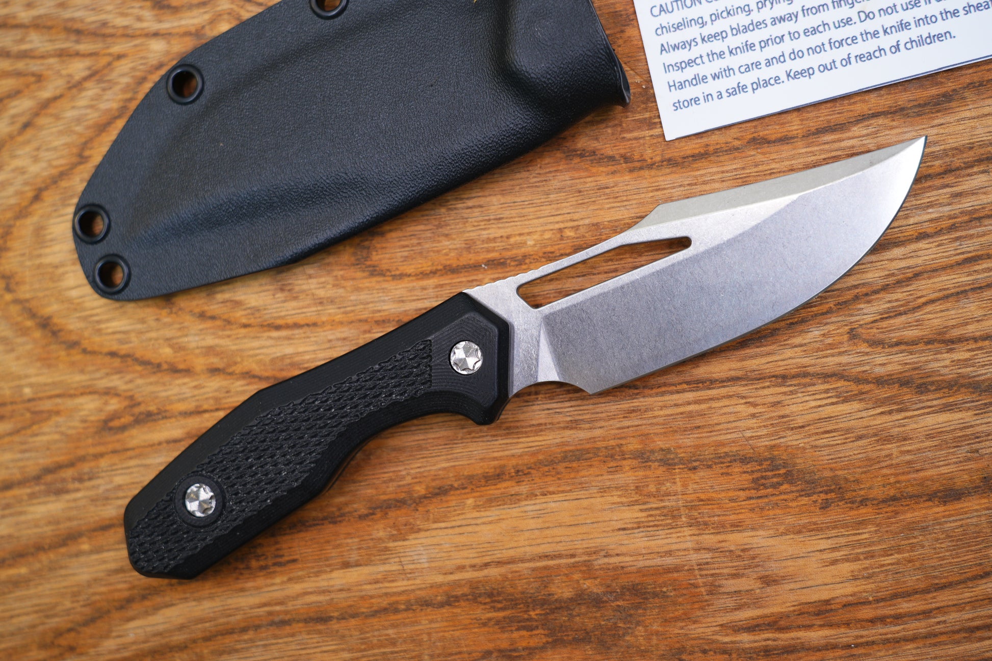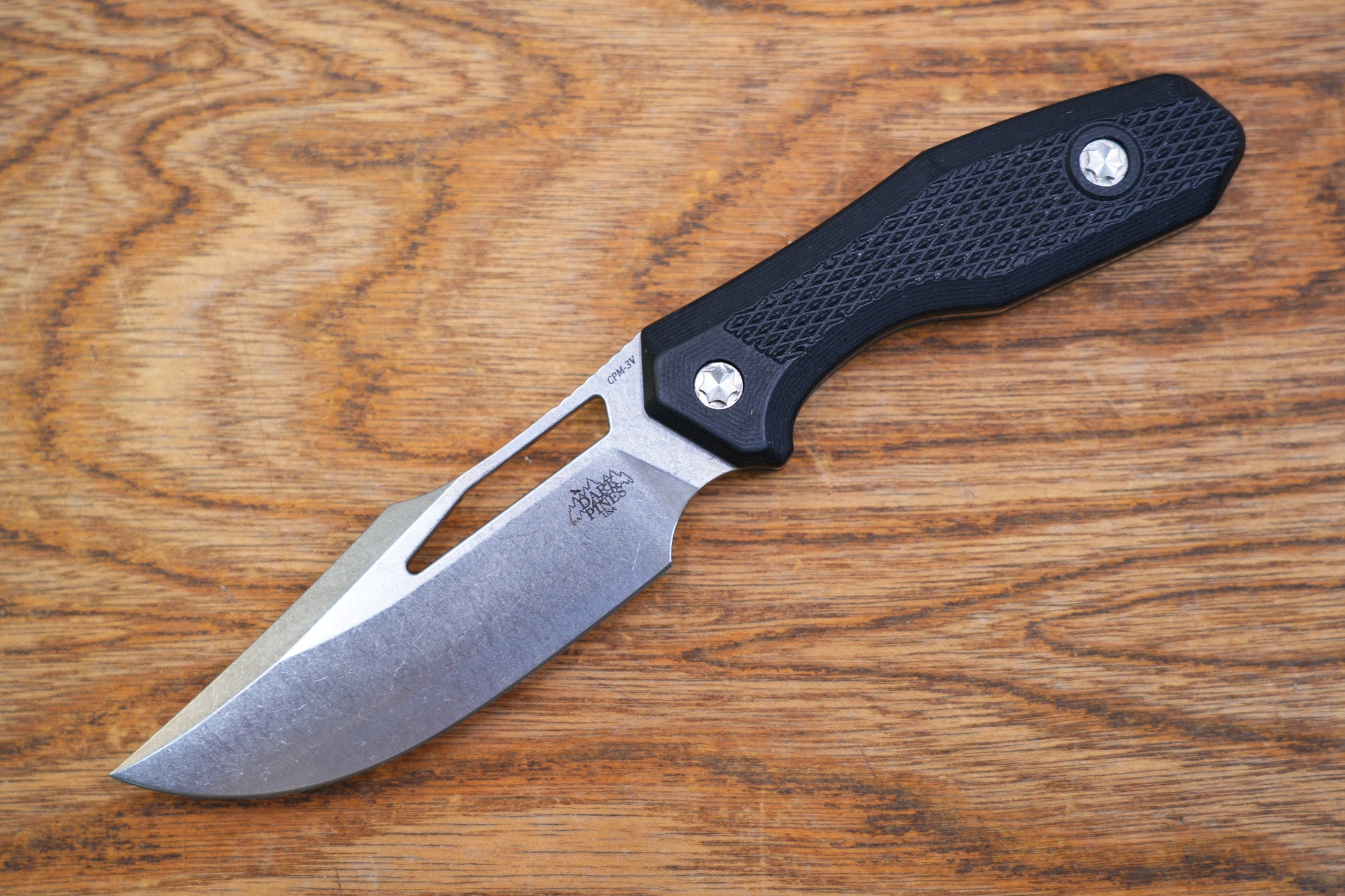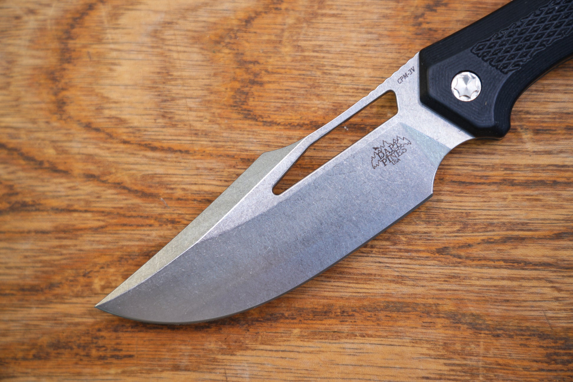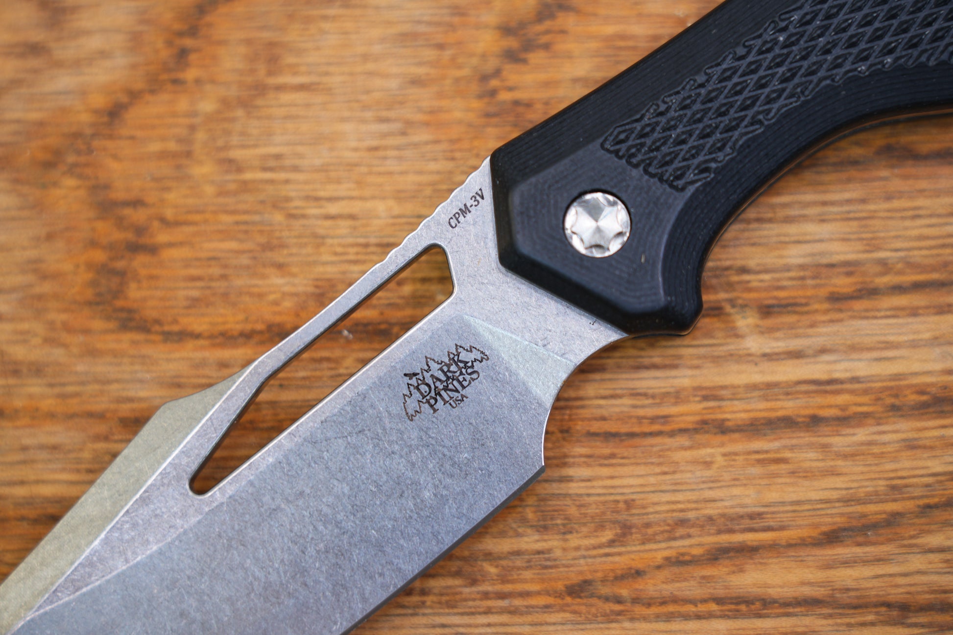 The 4 inch blade is USA made CPM-3V steel. A stonewash finish helps hide any scratches you may add to the blade and helps prevent light reflection. Jimping on the thumb ramp provides an excellent saddle for thumb placement during use. A slotted fuller adds to the astetic and reduces weight.