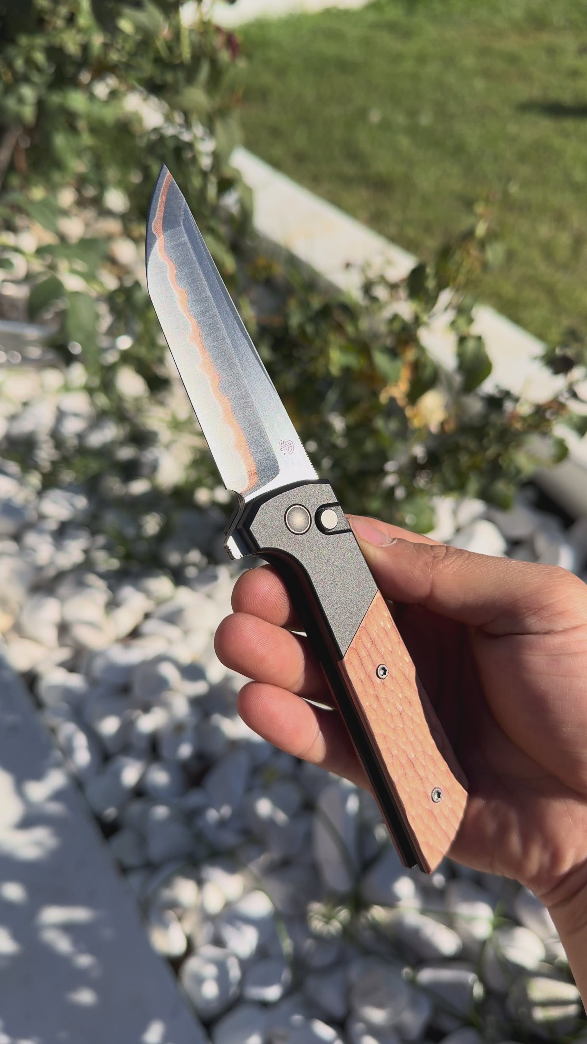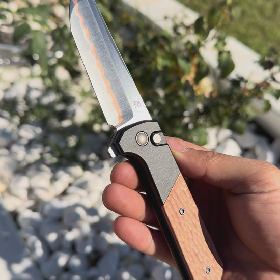 This custom-forged blade features a five-layer steel core with copper layered inside, giving it a distinctive, eye-catching look. Just a heads-up, though—copper naturally oxidizes over time. Whether that’s a dealbreaker is up to you, but one thing’s for sure: this is one of the most affordable custom copper-blade knives out there, with solid craftsmanship that makes it a great bang for your buck.