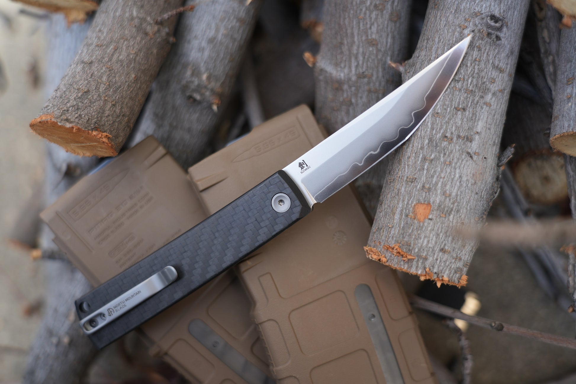 This classic Japanese tactical folding knife merges traditional design with modern functionality. The segmented TANTO style blade is made of our custom SLD-Magic three-layer steel with a hardness of up to 61HRC, using classic NorthMountain hand-hot forging technology to create real blade surface ripples. The blade is concave ground for excellent cutting results, and the TANTO tip is flat ground for powerful piercing results.