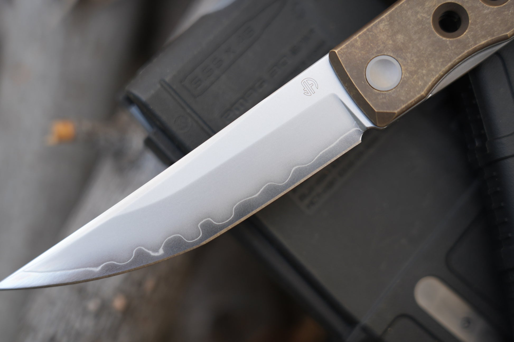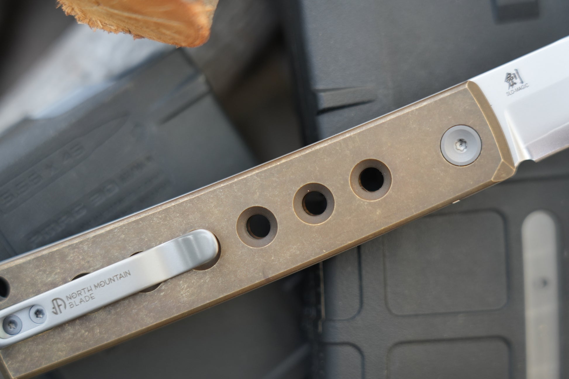This classic Japanese tactical folding knife merges traditional design with modern functionality. The segmented TANTO style blade is made of our custom SLD-Magic three-layer steel with a hardness of up to 61HRC, using classic NorthMountain hand-hot forging technology to create real blade surface ripples. The blade is concave ground for excellent cutting results, and the TANTO tip is flat ground for powerful piercing results.