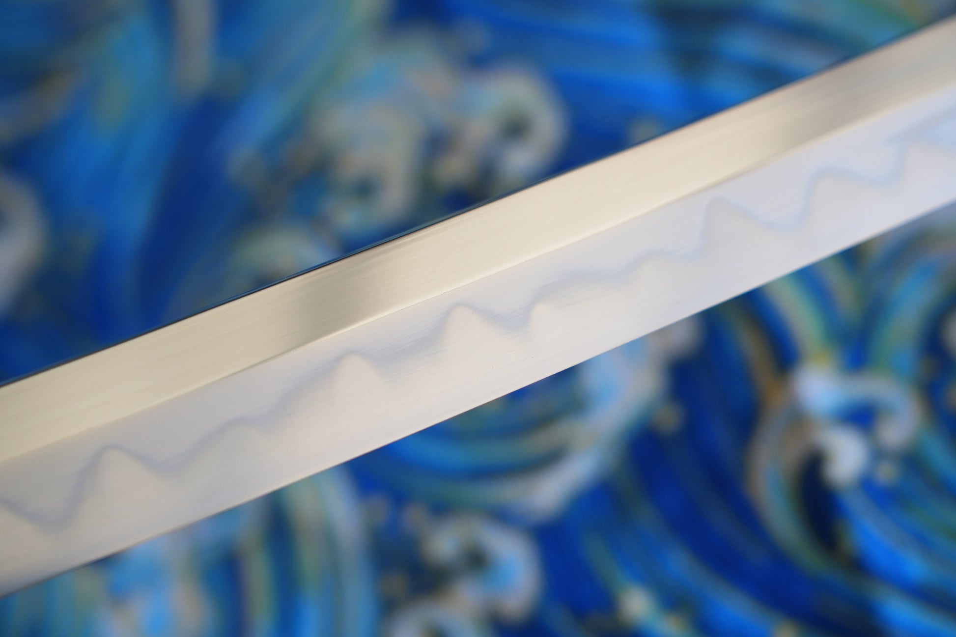 Authentic Clay-Tempered Blade (Hamon): Using traditional clay-insulation techniques, this blade features a genuine, one-of-a-kind Hamon. The undulating "wave" pattern is a result of the differential cooling process, creating a razor-sharp edge with a resilient, shock-absorbing spine.