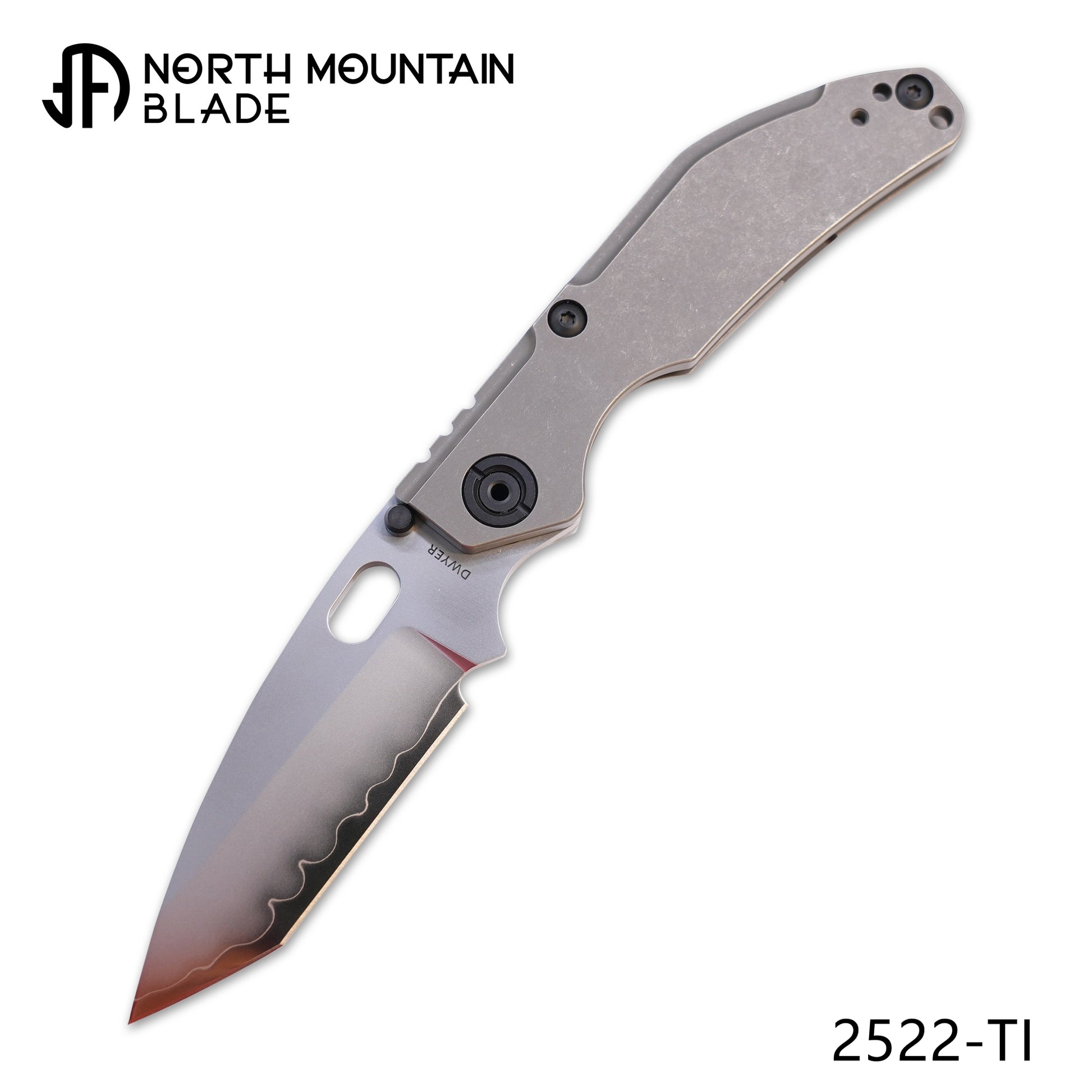 The North Mountain Blade BBNM is a precision-crafted folding knife that blends modern performance with traditional craftsmanship. Designed by Duane Dwyer and made by Japanese-trained artisans, this knife features a striking SLD semi-stainless steel blade with a satin finish and hamon, offering exceptional durability and edge retention. The tanto blade shape and flat grind ensure reliable cutting power for a variety of tasks, while the titanium handle provides a sturdy yet lightweight grip. A robust frame lock secures the blade, and the smooth action makes deployment effortless. Built for those who demand quality and performance, the BBNM is a refined pocket knife with a rugged soul.